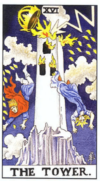 When drawn upright, the card signifies: Bankruptcy, adversity, dismissal from work, sudden illness, a devastating blow, drastic changes, being implicated in trouble, collapse of faith, reaping the consequences of recklessness, constant turmoil, abrupt separation, and a love that ends in ruin. The obstacles in your career are plain to see—avoidance is not an option; you must dare to face the challenge head-on, formidable as it may seem. Emotionally, the sudden change plunges you into profound grief. Embracing this transformation will allow you—or both of you—to walk a better path in your future life journeys.